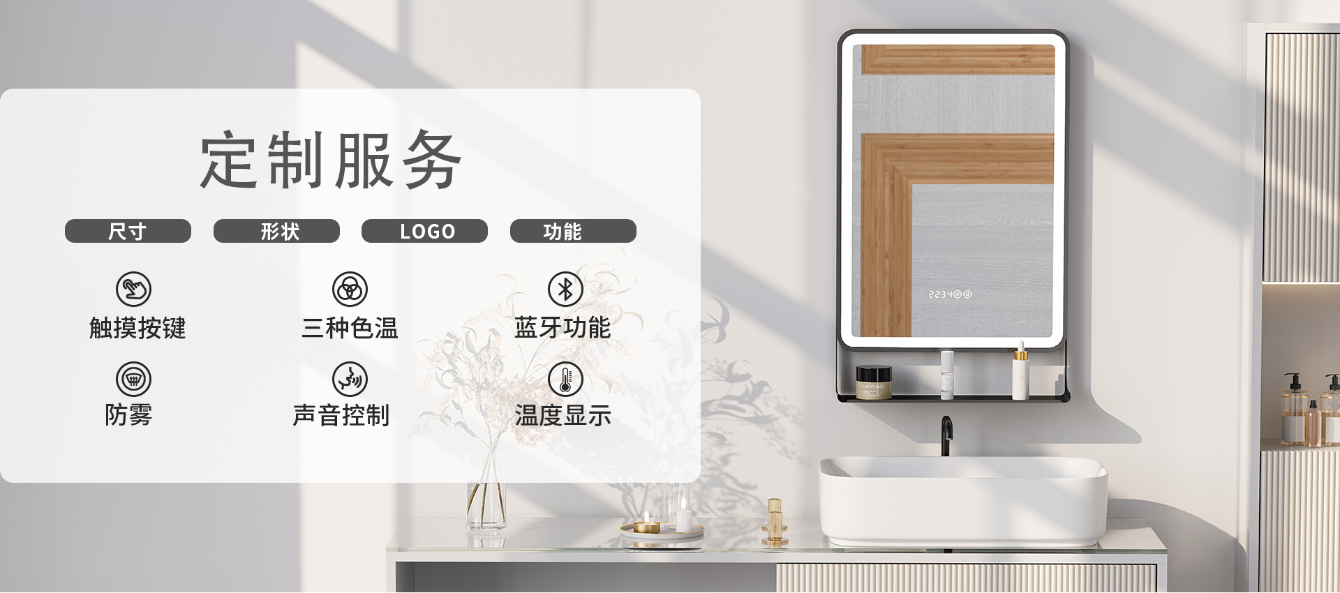 2021年更增加了智能浴室鏡的生產線,獨特的設計,圍繞著特定的應用場景,加入了豐富的定制化功能。